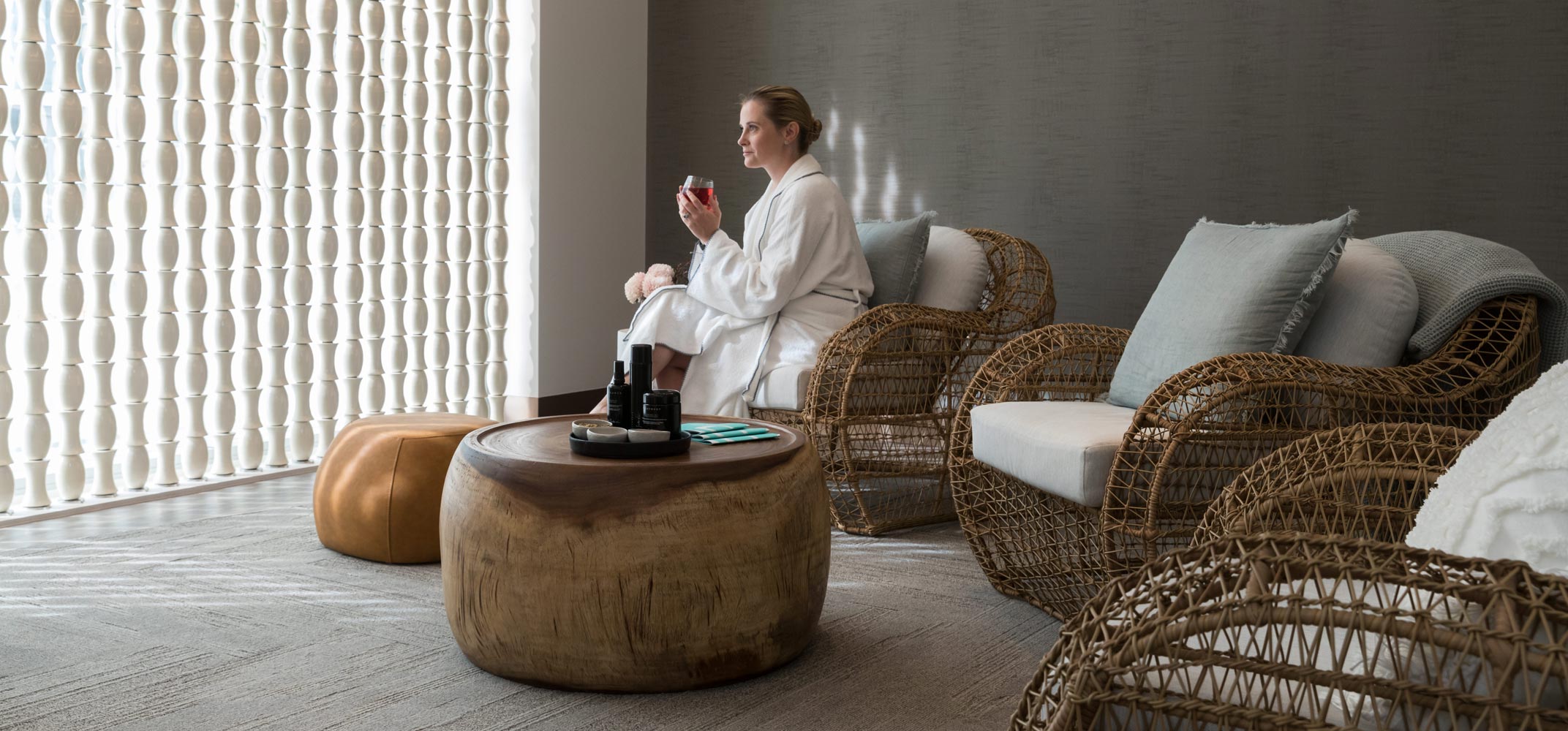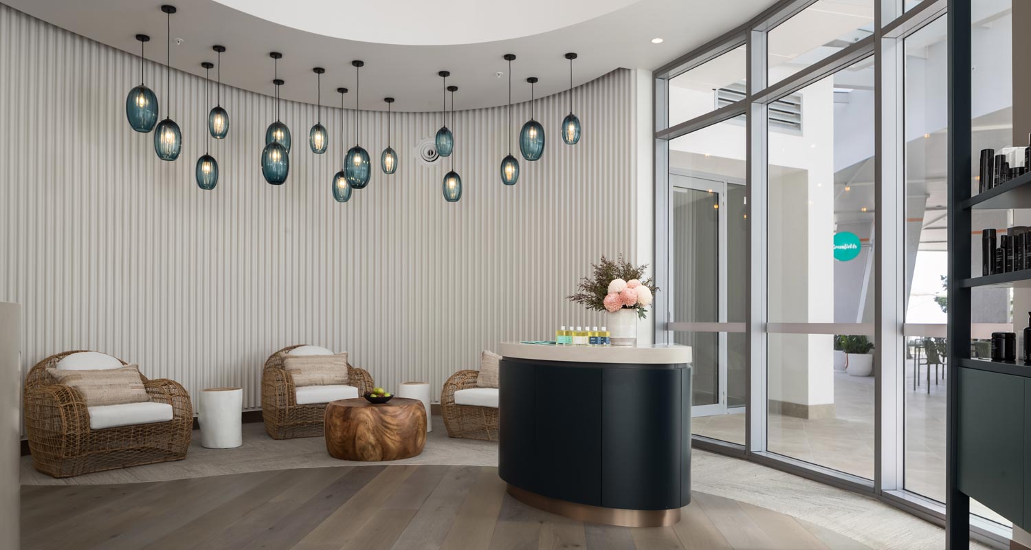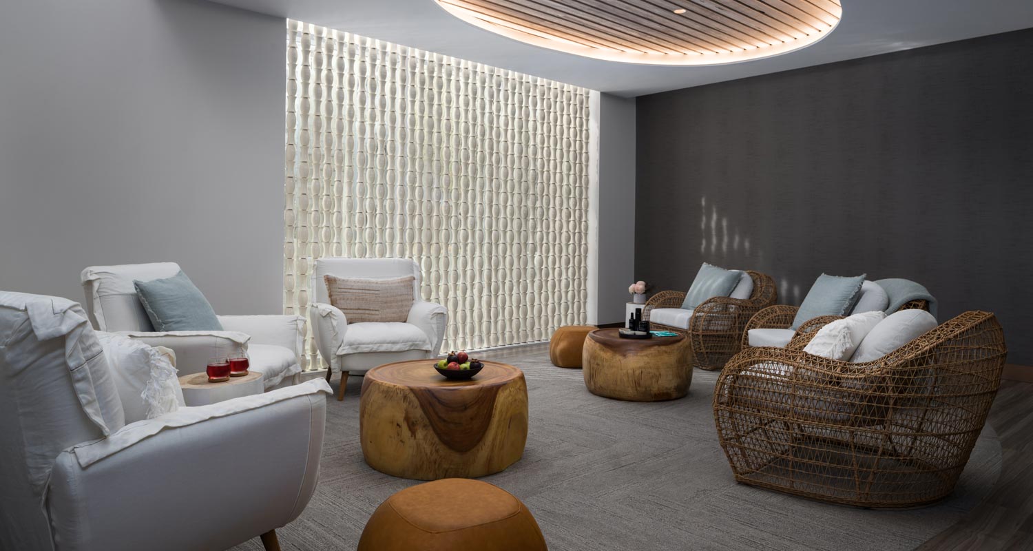 Eléme Day Spa at Riley boasts five luxurious treatment rooms, welcoming both day and hotel guests. Interiors have a timeless feel with crisp white walls, a textured feature wall in each room inspired by the natural environment and subtle mood lighting that creates a relaxed ambience. The furnishings are natural and clean, consisting of wicker and wood materials, warm tones and gentle bursts of teal, reflective of the brand philosophy.
