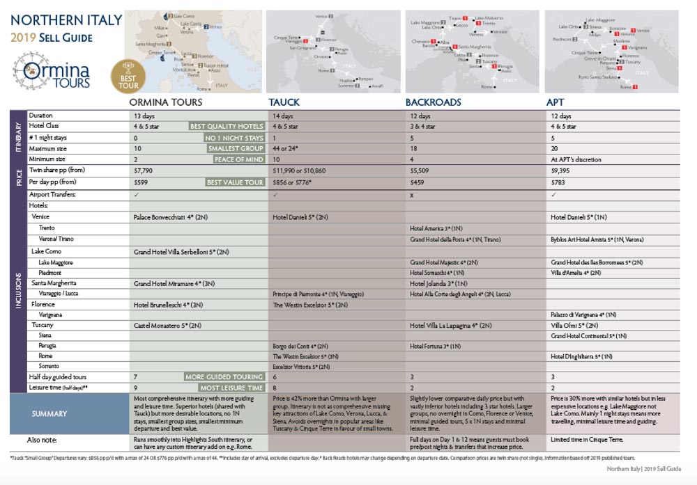 Ormina Tours demonstrates its position in the luxury small-group touring segment with the development of an Agent Sell Guide focusing on the Northern Italy Market, part of the Agent Sell Guides initiative launched in 2018.