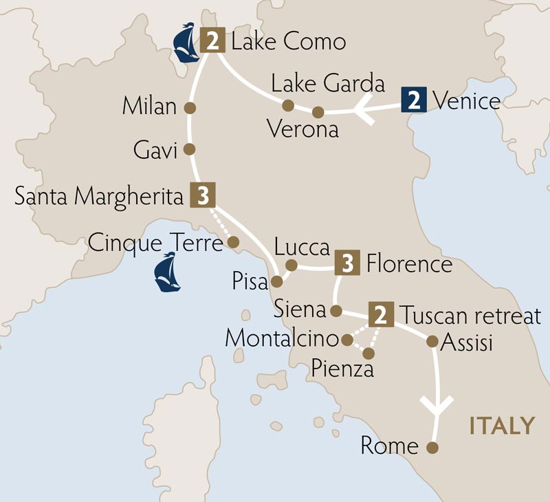 The line-by-line comparison of Ormina Tours’ Highlights of Italy (North) Tour with other similar tours on the market (operated by Tauck, Back-Roads and APT), shows a clear-cut contrast of various factors, including price, group size, duration of stays, hotels, tour inclusions and overall value for money. (Click here to view the comparison guide.)