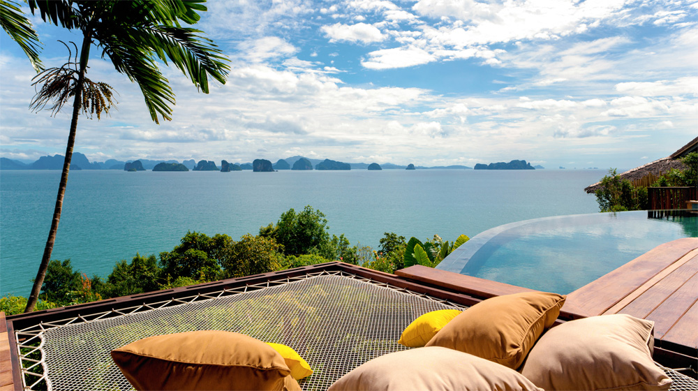 True to its name, The View offers a 360-degree view of the surroundings, including the iconic limestone karsts of Phang Nga Bay. As all main walls are glass, the ocean, jungle and waterfall can be seen, along with the different hues of the sky, from inside or outside the villa.