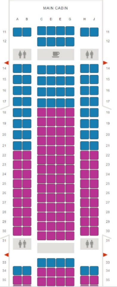 Throughout the Economy cabin, it’s a 2-4-2 configuration, so while there is the highly sought extra leg room in Extra Comfort, the width remains the same.