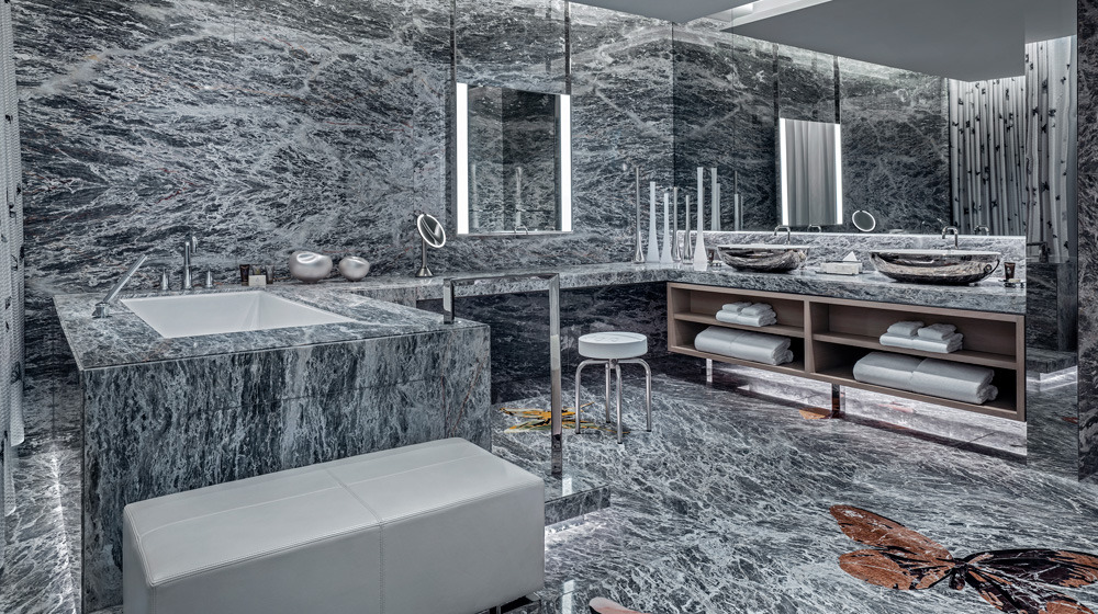 The Empathy Suite designed by Damien Hirst joins the hotel’s other five Sky Villas, all of which have been completely re-imagined from top to bottom by award-winning Bentel & Bentel Architects, making them some of the most luxurious (and expensive) hotel accommodations in the world, ranging from US$25,000 to US$50,000 a night.