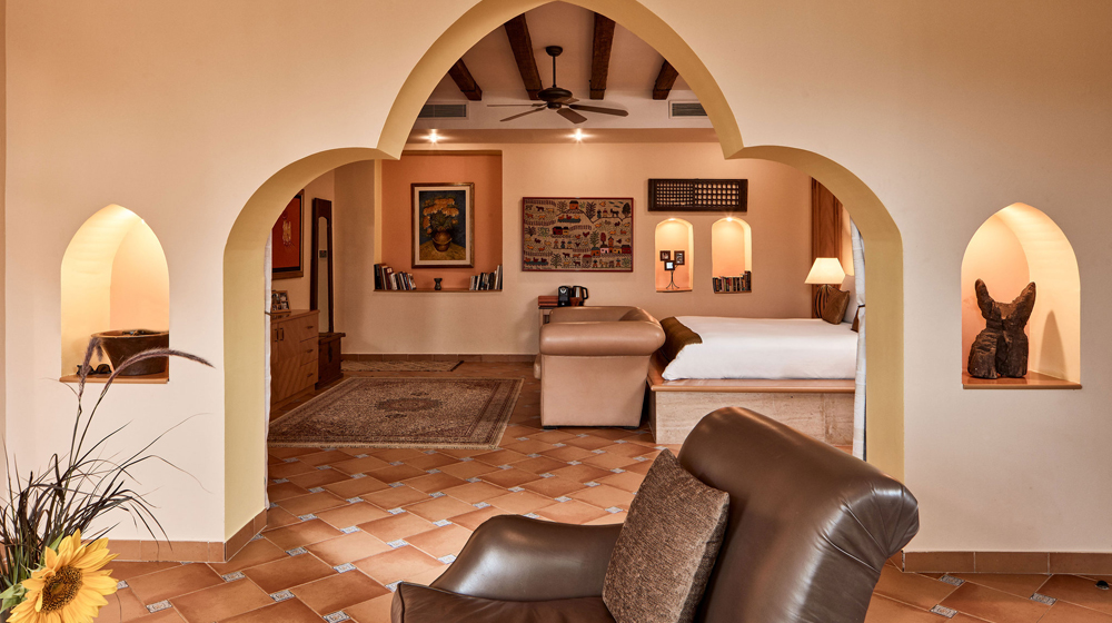 Lazib Inn Resort & Spa may be a desert hideaway, but lush greenery and panoramic views of Lake Qarun greet you upon arrival. A modern take on Fayoum’s time-honoured residences, the suites marry traditional charm with contemporary elegance. With a king bed, private balcony, rainfall shower and Jacuzzi in every room, this is Egyptian living at its finest. Traditional fabrics, fireplaces and characteristic pink clay walls lend a high-end, cosy feel. Relaxation is the order of the day, with palm-fringed infinity pools and the incredible desert oasis as your backdrop.