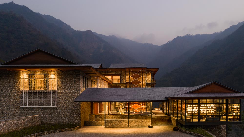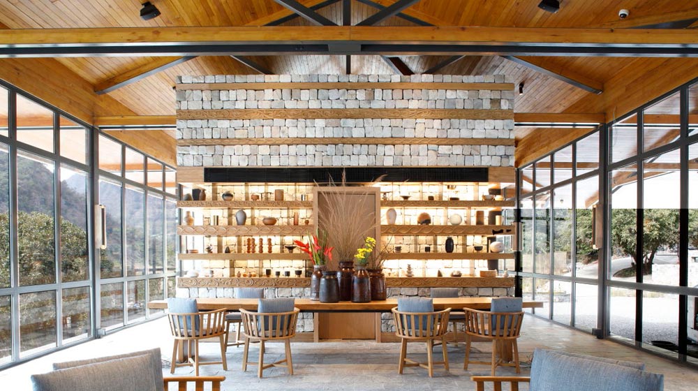 The resort, 30 kilometres from Rishikesh, is spread over 12.5 acres (five hectares) of terraced gardens on the banks of the river Ganges in the shadow of the Himalayas. Each of the spacious 79 rooms has panoramic views of the Ganges’ white sandy beaches and the mountains behind. Taj Rishikesh is a unique blend of contemporary and rustic, blended with nature; an architectural tribute to the Garhwal region in which it resides.