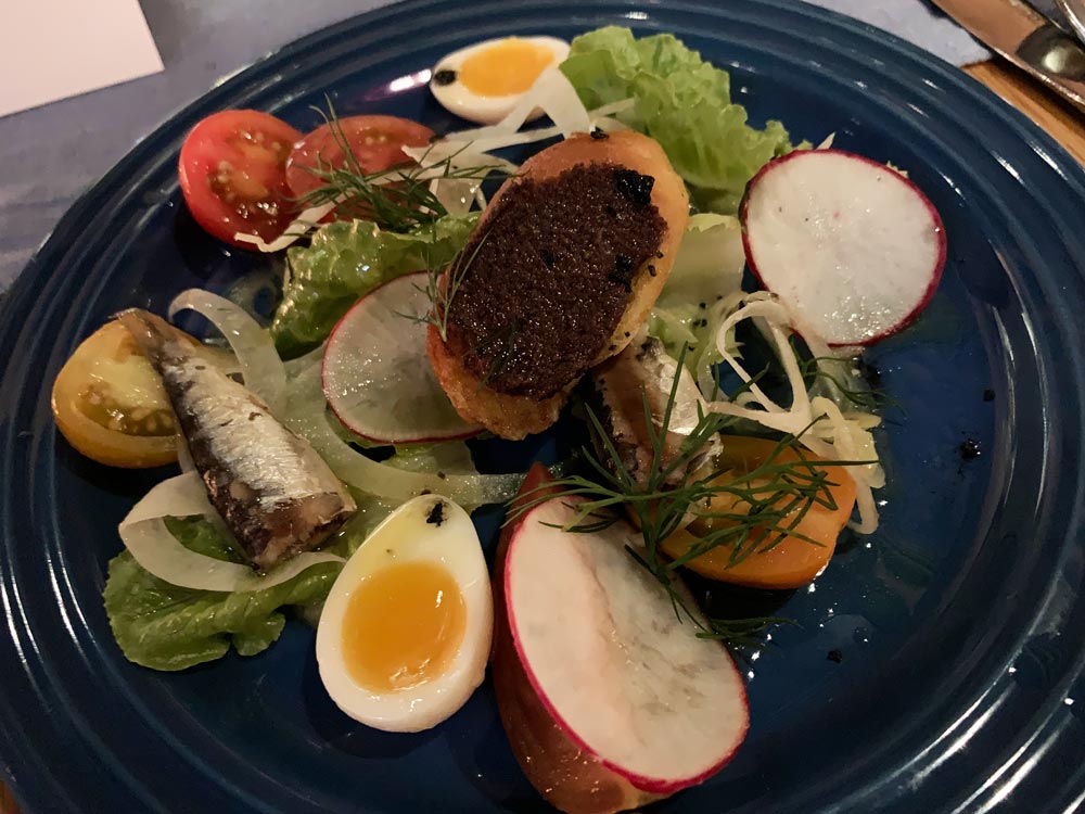 Niçoise Salad with “Espinaler”sardines, olive tapenade and panisse pissaladiere