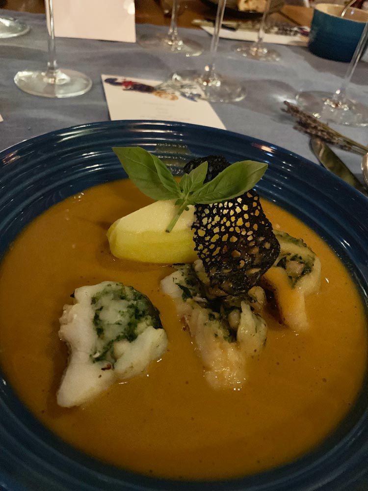 The menu also includes classic French dishes such as Paté en Croute and a Niçoise Salad, this time featuring a twist on the traditional preparation using socca or chickpea crepe along with fresh greens and sardines – a recipe with its roots in Provence and Liguria.