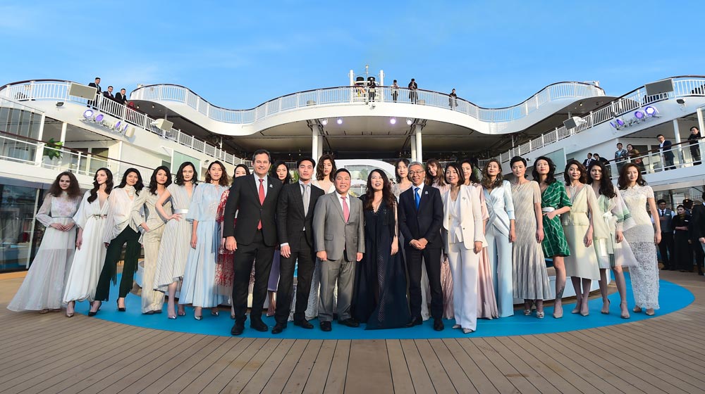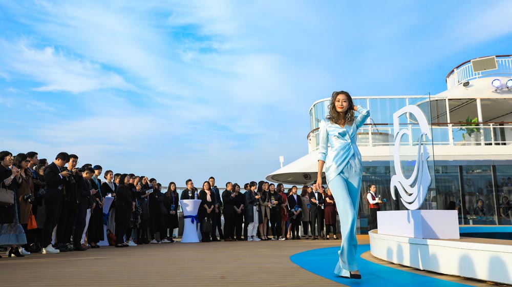 After the inaugural ceremony, Grace Chen presented a spectacular fashion show at sea aboard the ship. Eighteen models showcased her Voyage collection and walked the runway on the Palace Pool Deck, where guests enjoyed a visual feast inspired by the spirit of exploration and discovery, both of which are the brand essence of Dream Cruises.