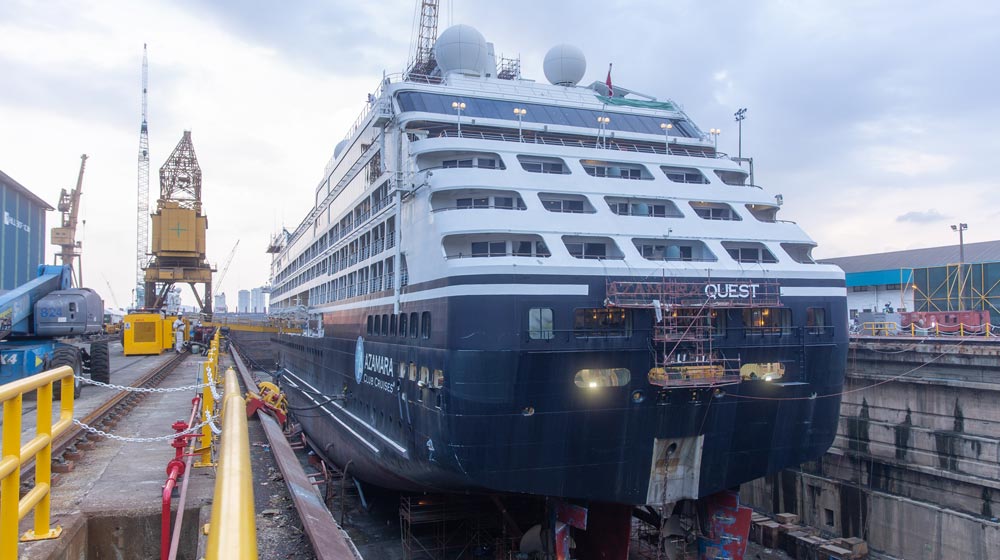 Azamara Club Cruises has replaced the casino on Azamara Quest in favour of a new lounge and added six additional staterooms following a recent dry dock in Singapore (pictured below).