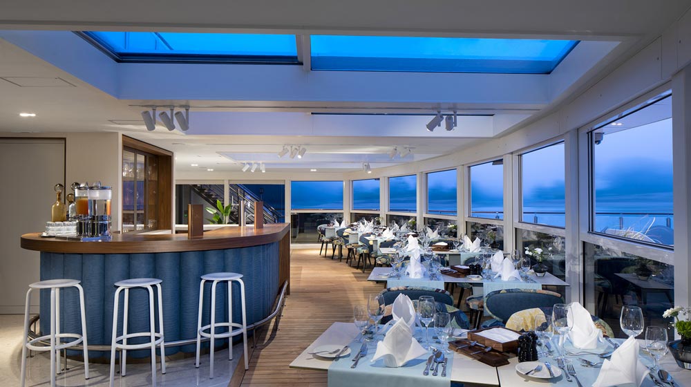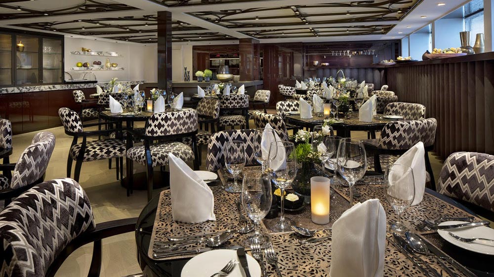 The ship offers four distinct dining venues, five bars, elegant lounges and luxury accommodation.