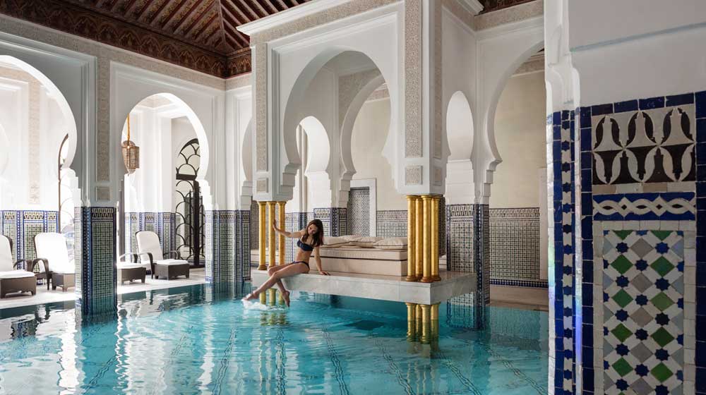 Among the spoiled-for-choice selections of hotels in this fascinating city is Royal Mansour Marrakech. This hotel is ideal for travellers who want to combine the feeling of staying in a riad, or ryad – housing in close confinement that partly overcomes lack of ground-space by building vertically – with true luxury. Try a genuine riad in Marrakech’s Medina old quarter and it will probably be extremely noisy and potentially dark and claustrophobic. Royal Mansour, opened in July 2010 at the command of the King as part of his 2010 vision to improve tourism, burst on to the scene to show that true 21st-century luxury need not neglect tradition. I arrived in the hotel’s Rolls-Royce but the doorman was in traditional gear.