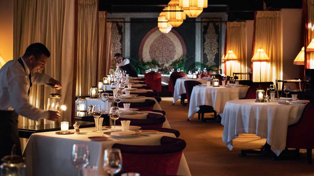 To the right of the Garcia Theatre is Le Français. There, on the French restaurant’s terrace, Etienne Haro and I dined in splendour. I started with a sucrine salad with tuna tartare and went on to a Charolais ribeye, carved tableside, with fabulous parmesan-dusted La Mamounia fries. We drank the hotel’s own Cuvée La Mamounia: first a 2018 blend of Chardonnay with 30% Sauvignon Blanc, then an all-Shiraz 2016. On request, top Sommelier Mickael Rodriguez, who helped blend these hotel wines, hosts tastings from his cellars.