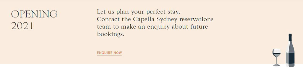 Capella Sydney’s website suggests the luxury hotel will consist of 274 Deluxe, Grand Rooms and One Bedroom Suites.