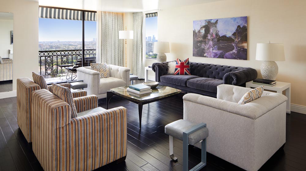 The hotel features 226 recently renovated suites, a 110-seat screening room, a state-of-the-art fitness centre and an 11,000 square-foot bi-level Penthouse Inspired by Vivienne Westwood: the largest penthouse in Los Angeles. All of the LWH suites offer an open floor-plan meant to take advantage of the inspiring views of the Hollywood Hills or towards the Los Angeles skyline. The panoramic rooftop pool deck offers private cabanas, a separate fire pit, as well as cocktails and light bites. The Alex Roldan Salon offers hair, nail and makeup services and unforgettable retail purchases in the Alex Roldan Shop adjacent.