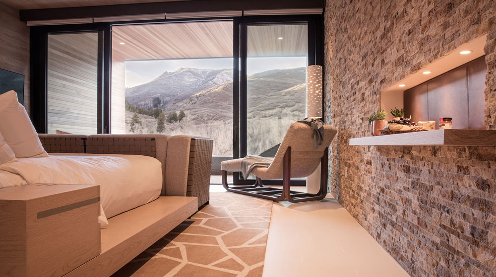 Designed as a retreat for families, friends and couples, the rooms and suites are filled with natural light, thanks to floor-to-vaulted-ceiling windows that open onto private outdoor spaces framed by stone walls, which are perfect for private skygazing. Spacious rooms and furniture with a natural color palette highlight the panoramic views that range from river banks to sloping grass hills and alpine highlands. The rooms feature bathrooms with deep soaking bathtubs, while some also have private outdoor showers. The Lodge at Blue Sky encompasses 46 guest accommodations in three distinct styles and locations: Sky, Earth and Creek, the design for each reflecting the unique topographical features of the environs in which they are situated.