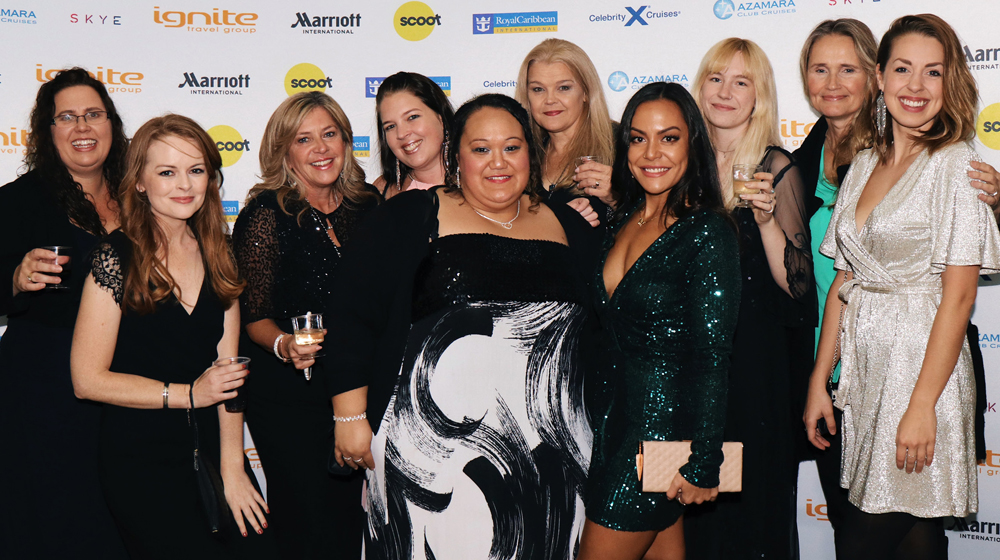 Lead image: Holiday Exclusives Team – Ellen Haerewa (centre white/black dress) 3 x Award Recipient in the following categories: Agent of the Year – Ignite Travel Group; Department Agent of the Year – Holiday Exclusives and Top Agent – Scoot.