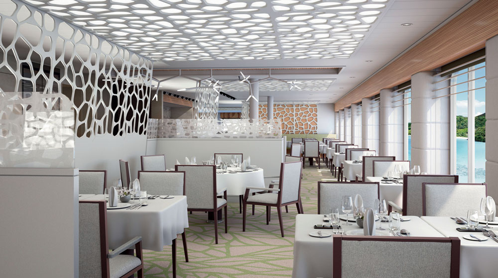 Three restaurants, with flexible meal times and free choice of seating, offer a choice of international, gourmet cuisine (all included in the cruise price); there is a spacious Ocean spa for relaxation time; and for use in warmer climates, a water sports marina at the stern of the ship.