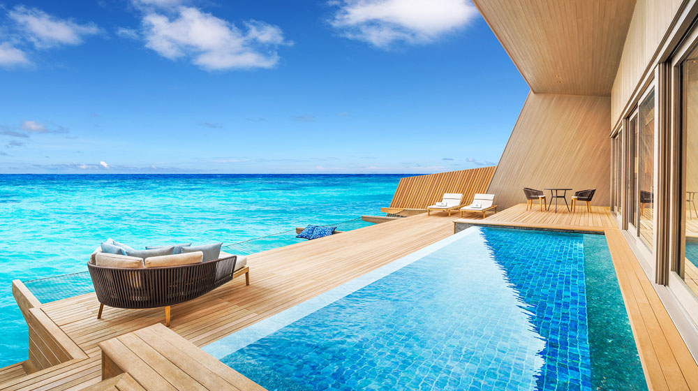 • @ The St. Regis Maldives Vommuli Resort: $100 spa credit, Blue Hole experience at Iridium Spa for two, along with VIP welcome amenities and late check-out