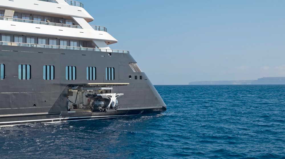 The photos below, supplied exclusively to LATTE, depict Scenic Eclipse at sea with the submarine in position to be lowered or having just been hoisted from the sea off the coast of Malta. The panoramic drone photos were taken as Eclipse arrived into Valletta, Malta last week, the yacht’s port of registry.As LATTE reported last Friday , Scenic quietly took delivery of Scenic Eclipse from the Uljanik Shipyard in Croatia in late July, at which time the Australian-owned luxury cruise and travel company revealed an ambition to expand its Discovery Yacht to a fleet to six.