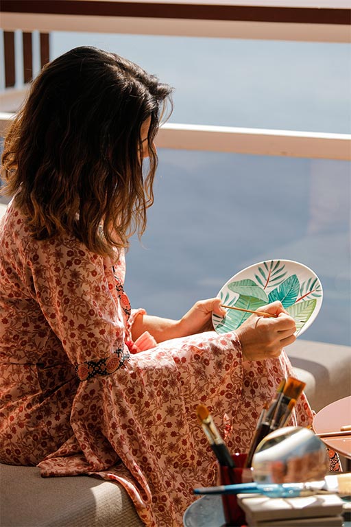 The series will celebrate the island’s quality produce and culinary flair combined with the artistic skill of Andrea Zarraluqui. Hand painting in her workshop, Zarraluqui takes inspiration from her favourite, lesser-known spots in Mallorca. Her love of orange and blue hues can be seen in the porcelain and truly brings the cuisine and its bold colours to life.