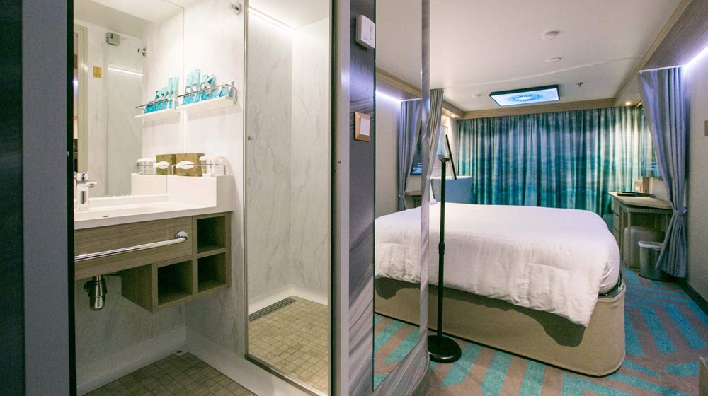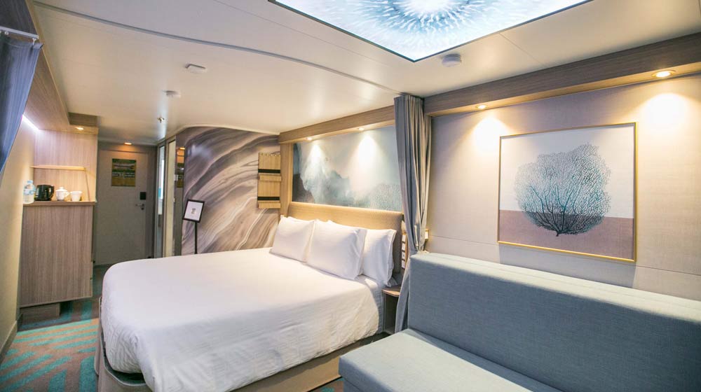 Designed for two guests, the staterooms can also accommodate up to four with a unique two-bathroom design to allow several people to get ready at once and a sofa bed that easily unfolds to sleep two comfortably. A privacy curtain can be closed to divide the room into separate seating and sleeping areas, making the cabins suitable for families and group travellers.