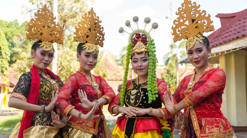 Our arrival in Cirebon, a port city in West Java, was greeted by the spectacle of colourful, individual pedicab rickshaws waiting to deftly weave us through the city traffic on a ‘Heritage sites of Cirebon’ tour. It was one that included the colourful food markets and the Great Mosque of Cirebon built around 1480. Later we were invited to sup with the Sultan of Kasepuhan and his wife at the 16th-century Keraton Kasepuhan Palace where we joined them in a spot of sociable dancing.