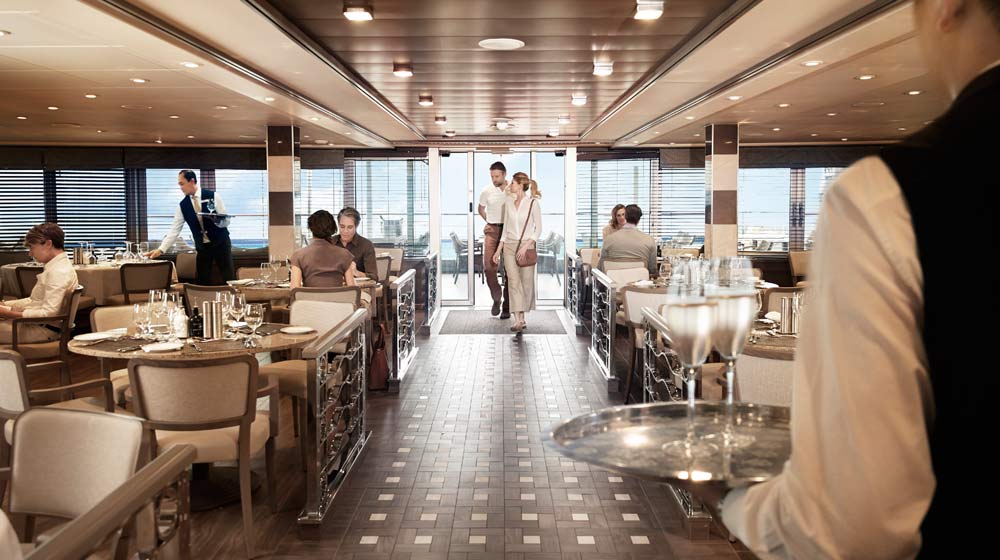 A flavourful expression of Silversea’s distinctive Italian heritage, La Terrazza offers authentic recipes with the freshest ingredients. Innovative interactive food stations include an olive oil cellar; a mozzarella bar; a seafood station; and a salumeria.