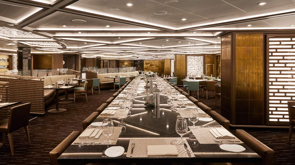 The ship has eight unique dining options on board, more than any other cruise ship of similar size. No matter where guests choose to dine, destination influence is readily apparent in the great diversity and freshness on offer. In addition to 24-hour complimentary in-suite dining, and firm favourites such as Silver Note, Spaccanapoli and Hot Rocks, here are five more venues to temper guest’s taste buds aboard Silver Muse.