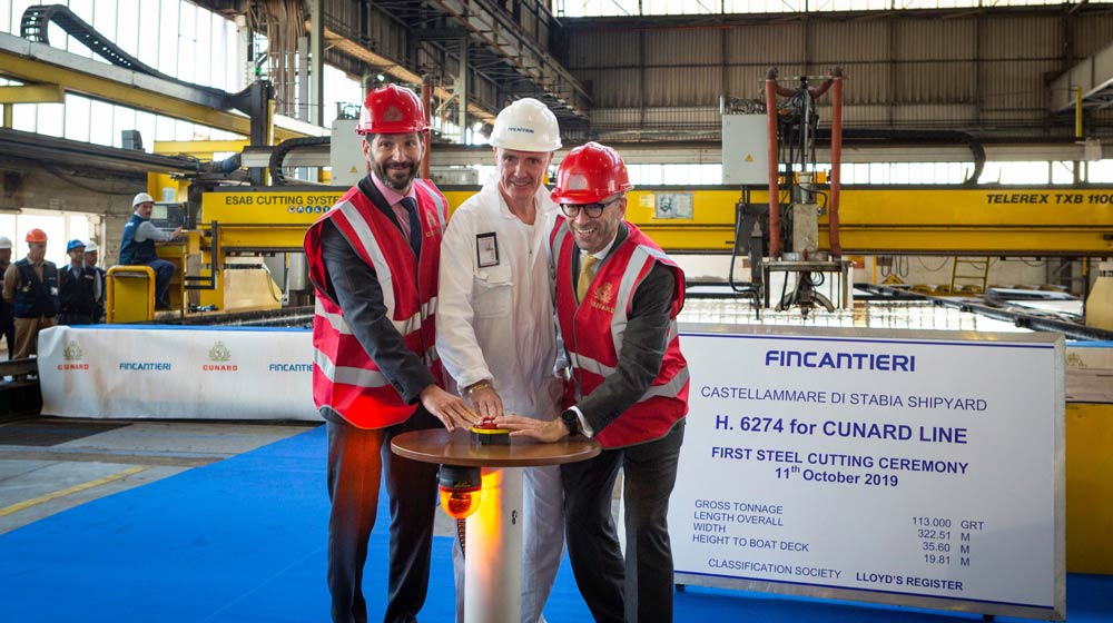 Cunard has commenced construction of its 249th ship, holding a steel cutting ceremony at Fincantieri’s Castellammare di Stabia shipyard in Italy last Friday .