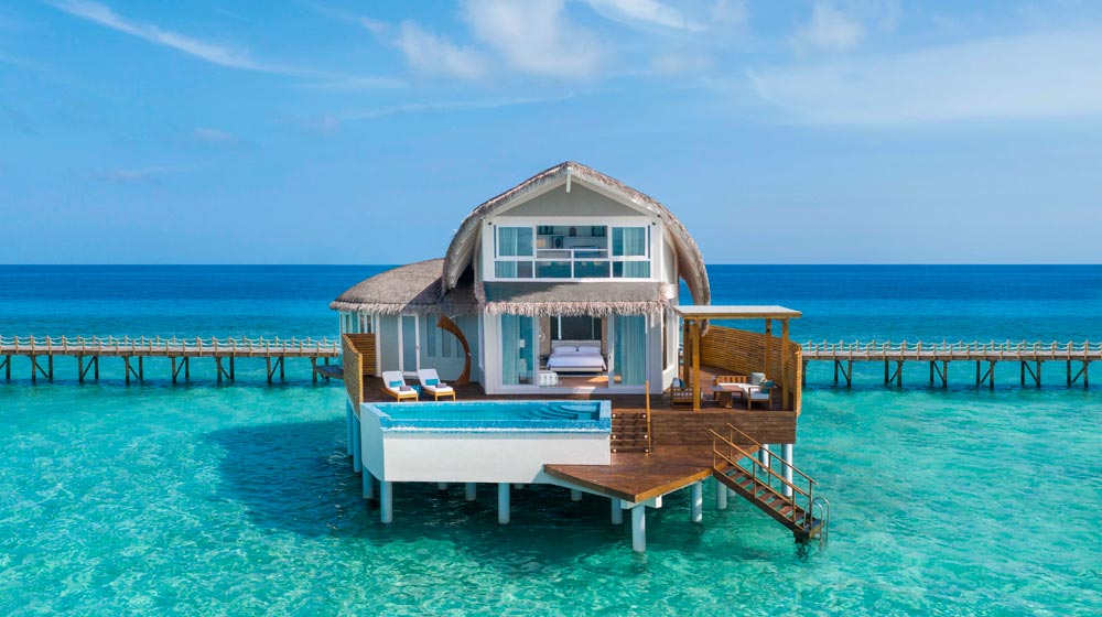 Duplex Overwater Pool Villas and single-storey Overwater Pool Villas are set on stilts overlooking the clear turquoise waters of the Indian Ocean, with a choice of sunrise or sunset views. While Beach Pool Villas come with direct access to the pristine white sandy beaches of the private island, the unique, split-level Duplex Beach Pool Villa is designed to cater to multigenerational families, featuring separate lounges, bedrooms and bathrooms to accommodate larger groups.