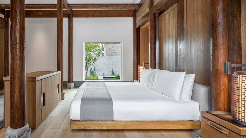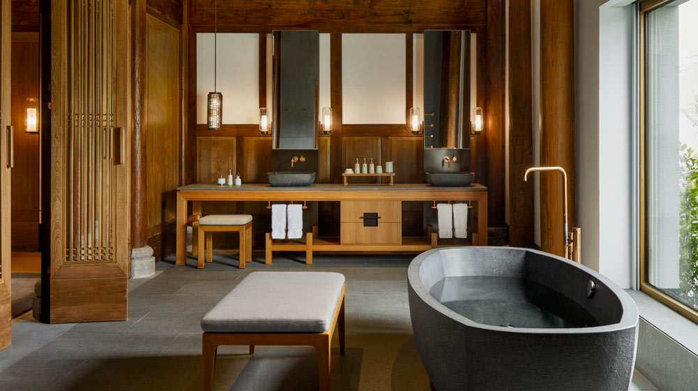 Amanyangyun, 45 minutes’ drive from the centre of Shanghai, is unique for many reasons. Other properties are converted from traditional houses. Amanfayun, near Hangzhou, is a re-use of an entire one-street village. Its houses, now individual villas, are still surrounded by tea plantations. But Amanyangyun all began because an entrepreneurial developer, Ma Dadong, then only 26, was so appalled that villages in Fuzhou were being completely submerged by a forthcoming dam that he bought 13 of their traditional stone mansions. Each is 300-500 years old, dating back to the Ming and Qing dynasties. He rebuilt them stone by stone on 48 hectares, which include a beautiful lake, on land he conveniently already owned (he also shipped 1,700 camphor trees he had similarly rescued from the dam).