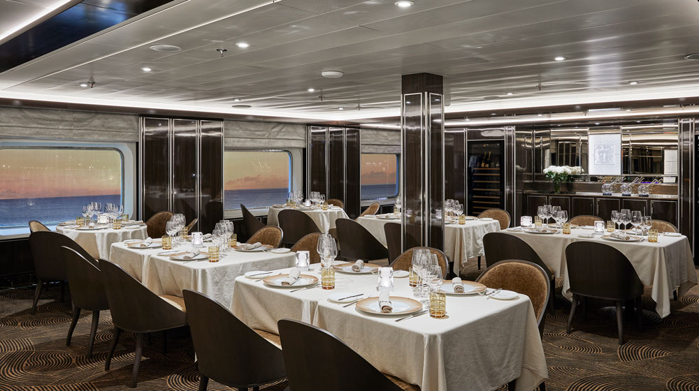 Handmade Lalique panels enrich La Dame Restaurant. La Dame’s décor has been enriched with bespoke, handmade Lalique panels. Moreover, in response to the venue’s overwhelming popularity, La Dame Restaurant on Deck 7 has been enlarged and now accommodates up to 40 diners, meaning all guests will be able to sample the venue’s sumptuous cuisine at least once throughout their voyage.