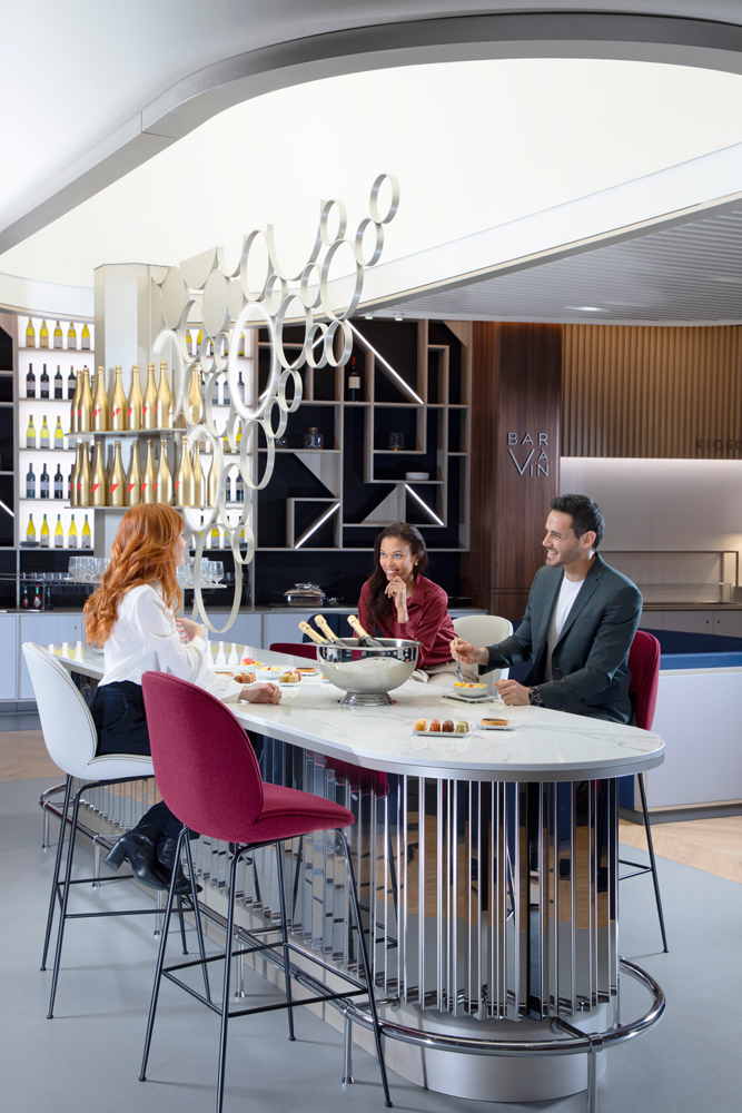 The Paris Orly lounge’s iconic element is a champagne bar offering a variety of renowned French signature brands all year round. Customers can also take their pick from a sweet selection comprising pastries and fresh fruit.