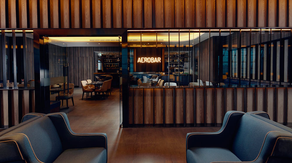 Located on the upper level overlooking departure gates A2 and A3, the lounge resembles a balcony, sweeping with natural lights from the airport’s high ceilings and offering apron views.