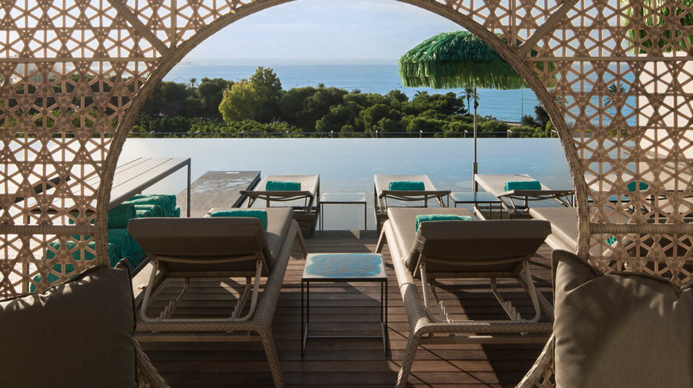 The pièce de résistance is El Llorenç’s three-tiered roof terrace – with its lounge, bar, and infinity pool surrounded by luxurious Balinese beds – which provides guests with an invaluable vantage point across the Old Town to the glittering Mediterranean beyond.