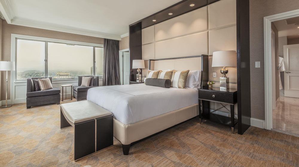 As I had found down the hill, San Francisco’s hotel lobbies are multi purpose. Here, the rear of the lobby offers, under a giant hemispherical dome, all day Laurel – not palm – court. To show how stiffness has no role to play in California, 2020, we were surrounded by all-age casual life, sweatshirts and sneakers (including my own Emilio Pucci contribution). I started my tuna tartare topped with avocado, a reminder of my Regent Seven Seas favourite, here accompanied by Patz & Hall 2016 Pinot Noir, and heard yet more tales from a self-appointed hotel historian, Hotel Manager Jacco van Teeffelen: we were later joined by his outgoing boss, Paul Tormey, who is relocating across the Bay Bridge to the Claremont Club, which Fairmont manages. We discussed the hotel’s Presidential Suite, with a secret door through which President Clinton once managed to evade his security for a few heart-stopping moments. Mind you, having seen that over-the-top suite, I was only too pleased to escape to my own suite, the soft-hued S-15, part of the Spreckels Suite, named for a local family known for philanthropy – it has the most dramatic 15th-floor views down to Alcatraz Island.