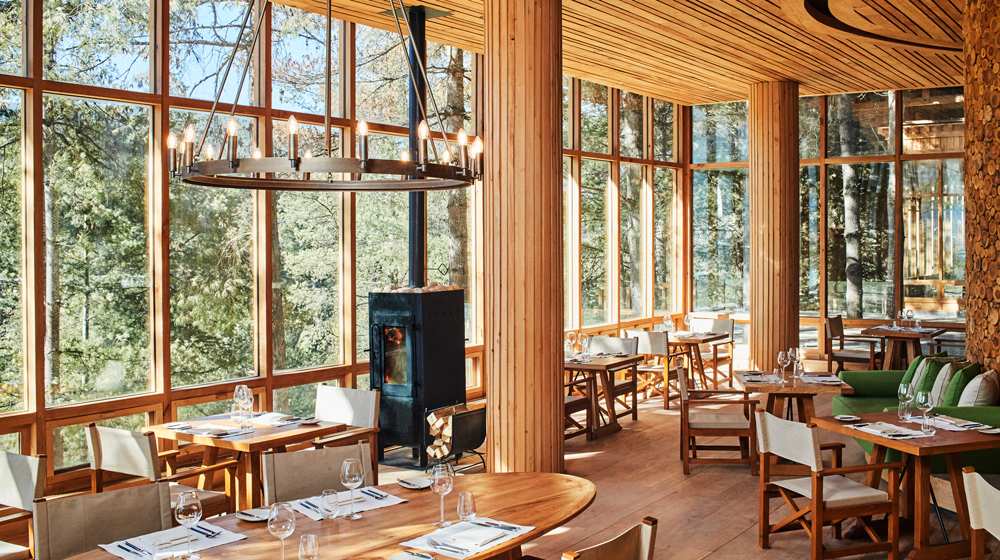 Tongtshang, or Pine Forest, the lodge’s signature restaurant, offers a cozy fireside setting. Those in favour of al fresco dining can enjoy a meal on the terrace while surrounded by pine trees growing around and even through its stone flooring. The menu features hearty local dishes: buckwheat and barley are combined with seasonal ingredients such as freshwater algae, hazelnuts and mushrooms and other staple foods from the valley.