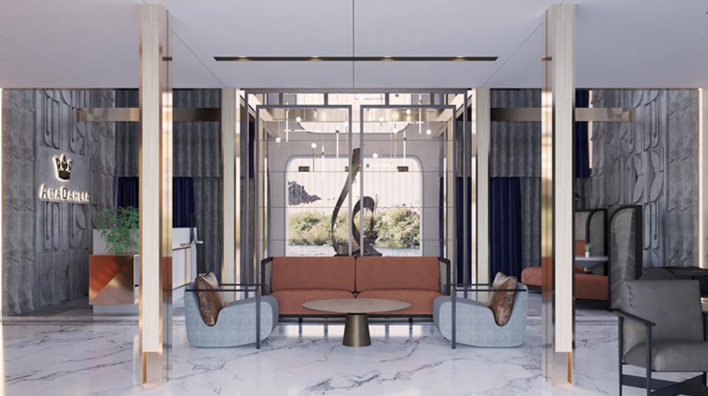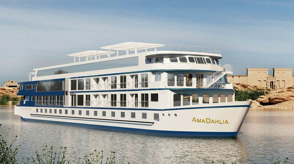 The Nile cruise component will be aboard the new-build 68-passenger AmaDahlia river cruise ship. The five-deck AmaDahlia will feature 10 Standard staterooms and 24 suites, the top of the line being the Lux Suite, positioned on the Lily Deck (middle deck), at the bow beneath the wheel house. Renderings of the ship suggest higher-class cabins and suites will offer French balconies.