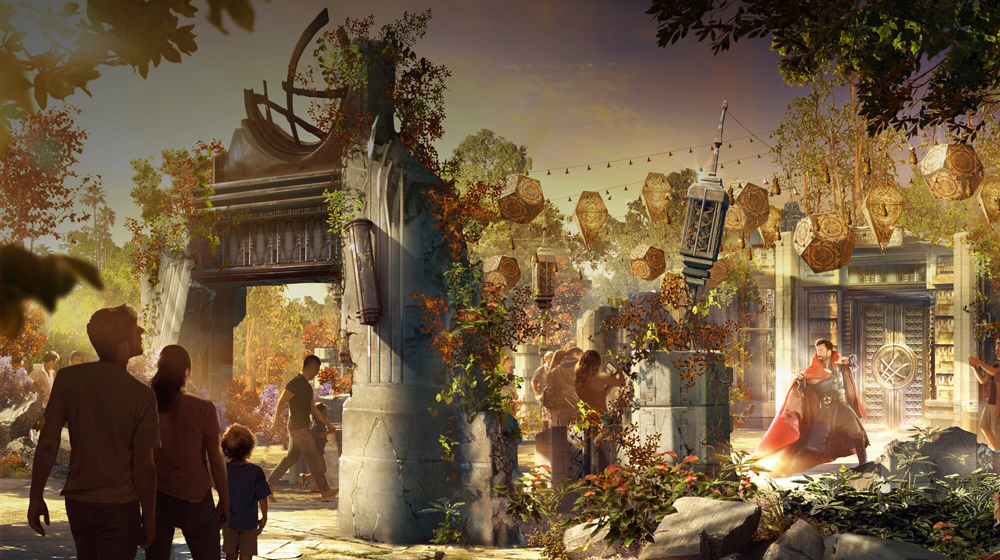 Exploring the overgrown ruins of an ancient Sanctum, guests can learn mysterious secrets from Doctor Strange and discover ancient, magical artifacts. Doctor Strange will train recruits in the ways of the mystic arts by bringing this ancient Sanctum to life with powerful spells. At night, the Sanctum glows even more vividly with majestic colours and lights, pulsating with mystic energy.