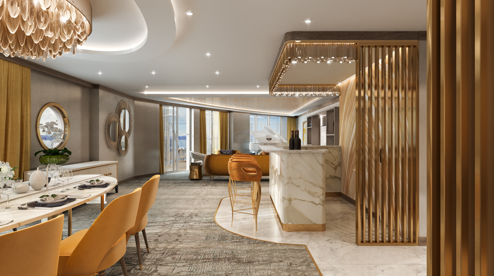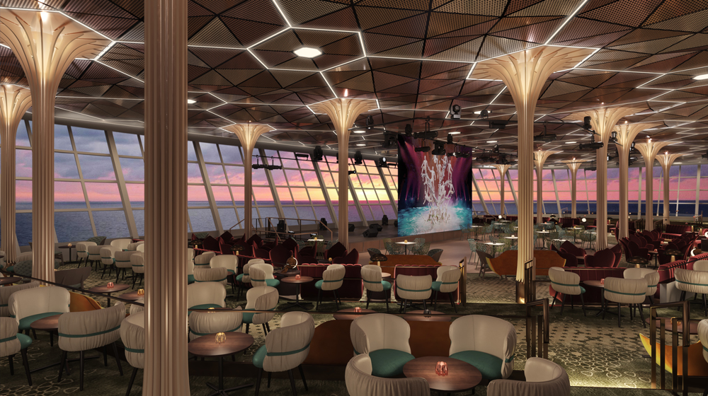 Guests will be further entertained in the eight-theatre cinema and the Horizon Lounge with 270-degree retracting panoramic projection screen, panoramic views and live shows.