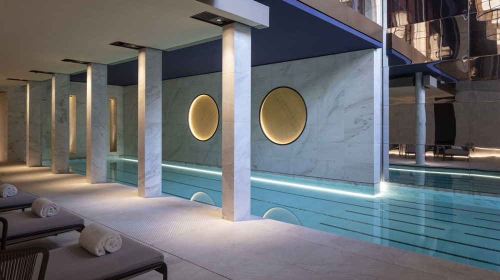 Despite my walk earlier I need the gym. It is in a purpose-built basement (that is where some of the Alrov’s spend went), one floor above a 17-metre indoor pool. The gym deliberately looks retro – think the facility at New York’s Greenwich Hotel. Its scarlet flooring matches the seats and other leather works of the Technogym equipment. I take a hotel inspection with the inhouse PR, a charming Chanel-catwalk type wearing a must-be-Faubourg suit, deliberately short trousers.