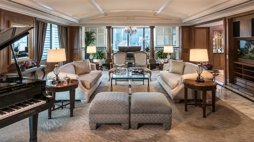 Premium Suite #1106 is on the top floor of the 469-key hotel. It has two adjacent spaces, both 13 by 5.5 metres. My living room has four-seat dining, the other space has a bedroom, bathroom and a walk-in closet. Apart from the honey-marbled bathroom, the entire area is carpeted in shades of striped mustard with plain mustard surrounding. The bed, with dark-brown bordered Frette linens, has on one side only a control pad for lights and temperature. Cream drapes and sheers are thankfully hand-pulled. On top of the desk is The Peninsula Manila – At A Glance, a single-sheet card to fill me in on happenings. The bathroom has a magnifying mirror (wall-set over the single, oval washbasin) and there is a deep soaking tub with washline overhead. The shower has single, hand-held sprayer. Oscar de la Renta toiletries are complemented by Peninsula-boxed necessities. Towels and fluffy robes are anonymous.