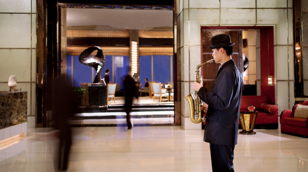 I head to the 55th-floor spa for a firm-pressure Chinese back massage. Would I like tea? No, I head to the gym for a necessary dose of BBC and Bloomberg world news, and sadly miss the hotel’s regular 6pm saxophonist playing in the lobby – he moves to the adjacent lobby lounge at 6.30pm.