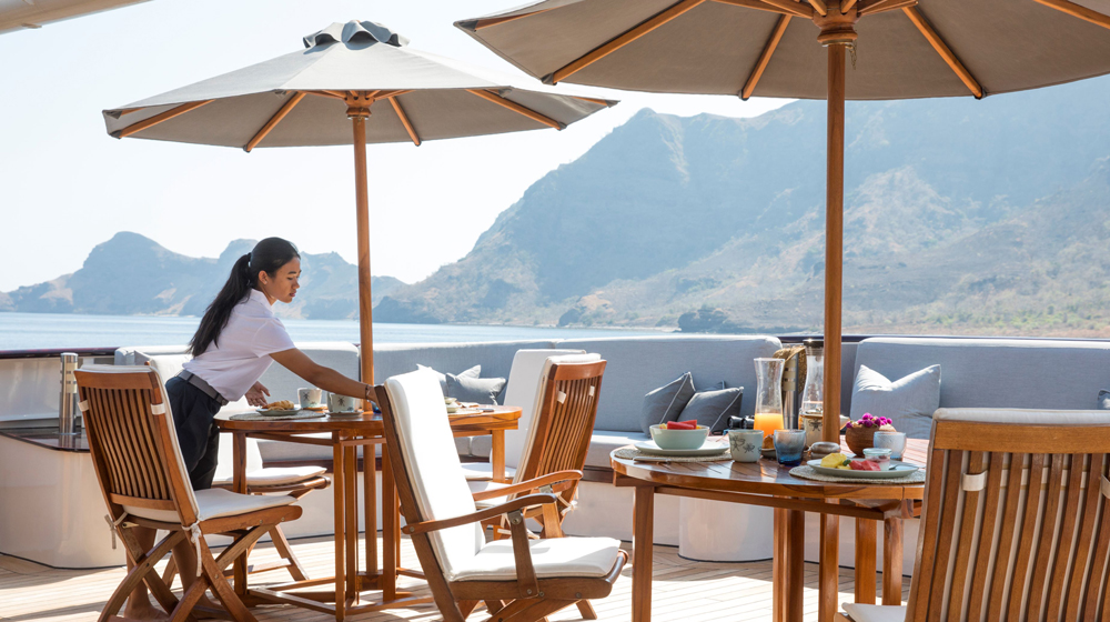 2021 rates for a seven-night private charter for up to 30 passengers start from approximately AU$420,257 and approximately AU$649,224 for 12 nights, including all meals onboard and beverages (premium wines and national beer), all excursions, snorkelling equipment and wet suits, scuba diving (for certified divers only), non-motorised watersports, group transfers to and from the vessel on recommended flights, laundry and internet.
