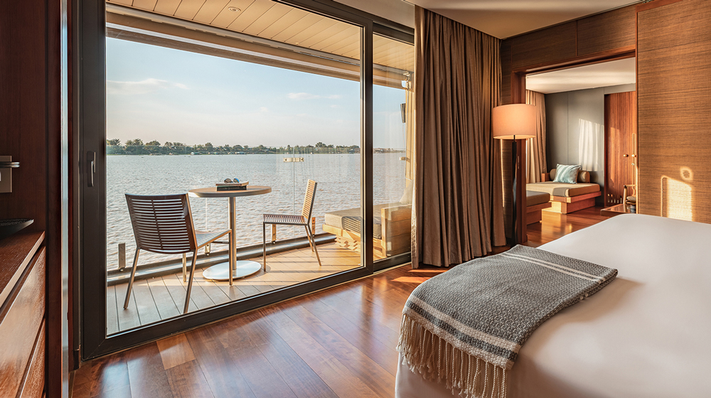 With the 20 large, river-facing suites conveying a welcoming and stylish sense of Amazonian tranquillity, the design philosophy continues to manifest across the vessel’s social spaces.
