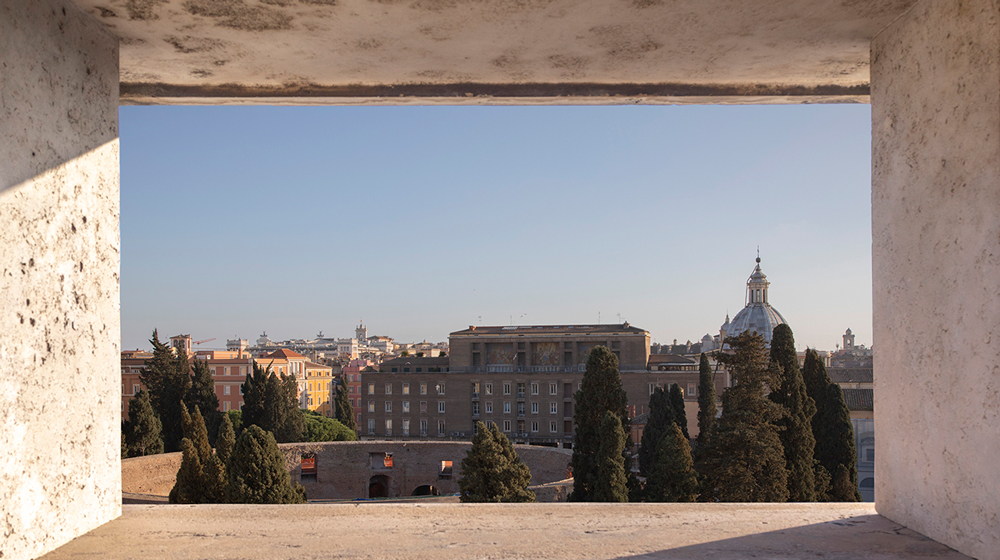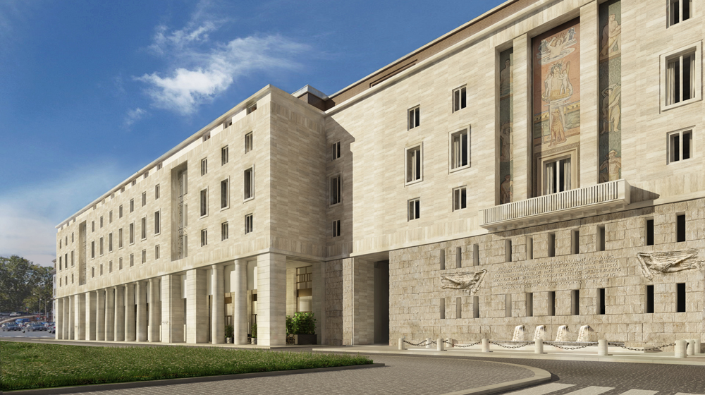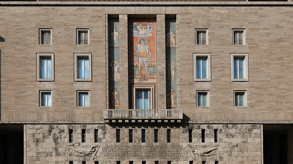 The building faces two of the most iconic Roman landmarks, the Ara Pacis and the Mausoleum of Augustus, the first Roman Imperator, which is currently under renovation. A fresco by Antonio Barrera features in the via della Frezza atrium, offering different views of the Mausoleum of Augustus, while the Southern face is decorated with a 70-square-metre mosaic by Ferruccio Ferrazzi, who offered his personal interpretation of the Roman foundation myth.