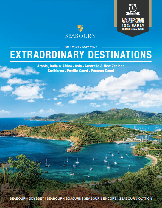 The 15-page Extraordinary Destinations brochure features details 56 unique sailings and nearly 100 departures, each seven to 36 days in length, sailing aboard Seabourn Ovation, Seabourn Encore, Seabourn Odyssey and Seabourn Sojourn. Missing is Seabourn’s upcoming and maiden expedition ship, Seabourn Venture, which is slated to launch in June 2021.