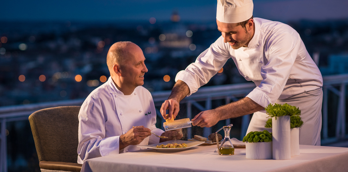 One of the most beautiful restaurants in the world, at La Pergola guests can bask in panoramas of the Eternal City on a spacious terrace while dining on some of Italy’s finest produce. Under Heinz Beck’s leadership, it has become a temple of international gastronomy, historically the first and still today the only three Michelin-starred restaurant in the capital. The cuisine is a combination of pure genius and creativity, starting from the world-class quality of the ingredients, which are born from the authentic flavours of the Italian and Mediterranean tradition.