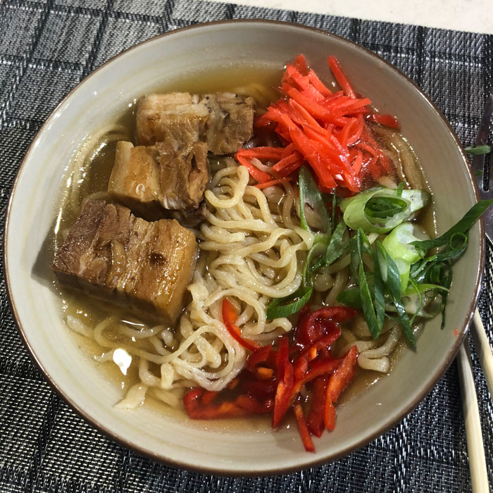 Expertly guided by chef Mayumi Nagata, the media group then prepared, cooked and dined on traditional Okinawan fare: soba noodles with tonkotsu soup, rafute (sweet braised pork belly) and goya chanpuru, a bitter melon stir-fry, all followed by sata andagi (Okinawan doughnuts).