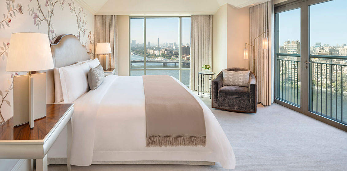 Dark wood and rich textures combine with intricate embroidery, bejewelled panelling, bronze and wood carvings embellished with flashes of shimmering gold, mother of pearl inlays and imposing crystal chandeliers creating a dramatic Egyptian aesthetic with modern execution.The St. Regis Cairo features 286 lavishly appointed rooms and suites and 80 luxurious apartments, that offer unmatched indulgence. Three expansive Royal Suites define opulence, with plush interiors featuring a private fitness room, sauna and floor-to-ceiling windows offering panoramic Nile views.