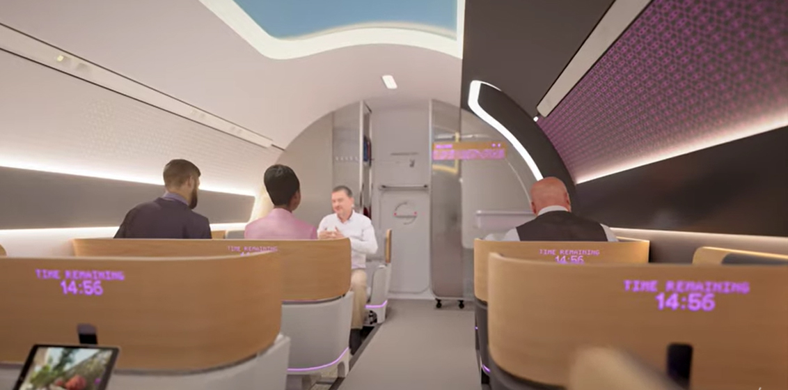 A simulated skylight will mimic natural light “making the cabin feel more open and welcoming,” the company says on its website.